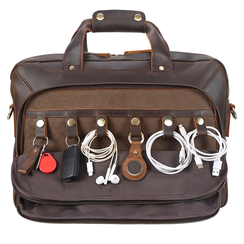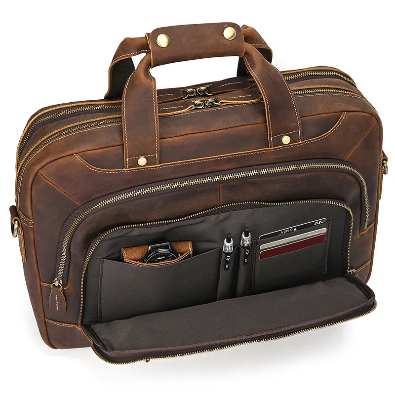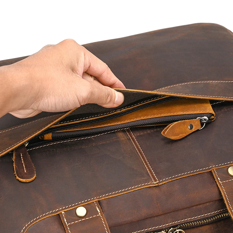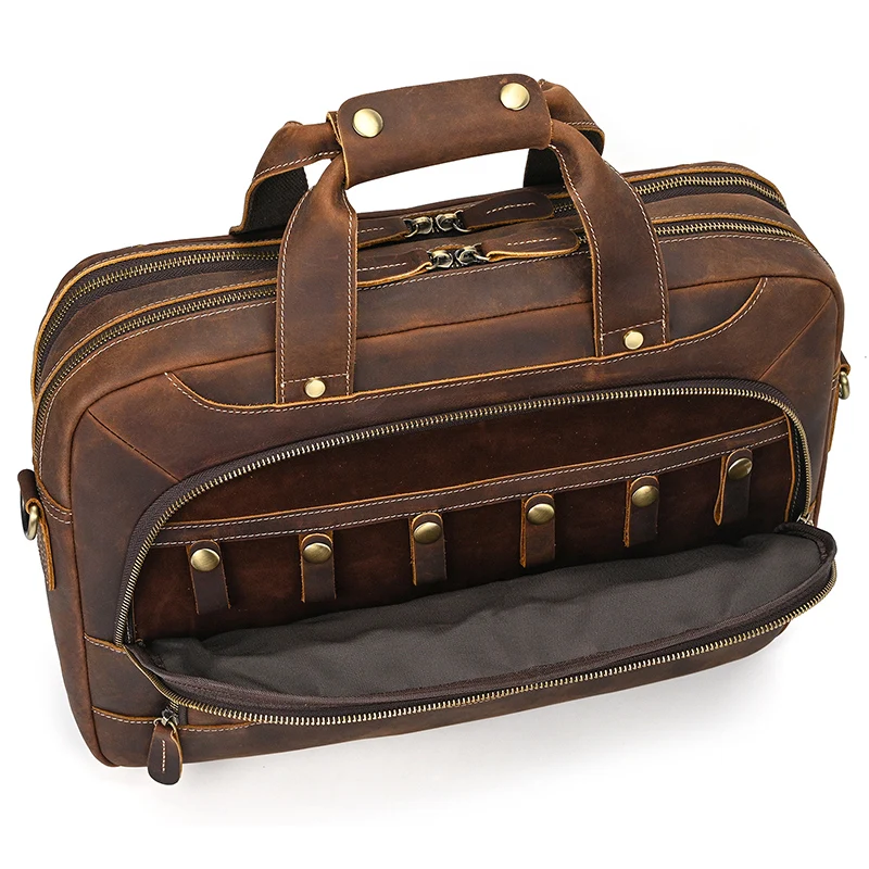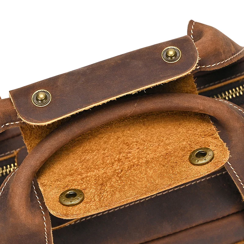 クレイジーホースレザーによる洗練された品質と上質なデザインが融合した、100%本牛革製の大容量トラベルダッフルバッグ。本物志向の主男性・女性に向けて、高級品を愛する方々にふさわしい魅力的なアイテムです。
