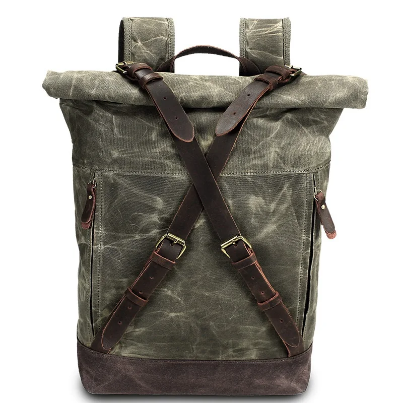 Retro Canvas Leather Backpacks For Men Waterproof Rucksacks Big Capacity Youth Locomotive Motorcycle Fashion Backpack Schoolbag