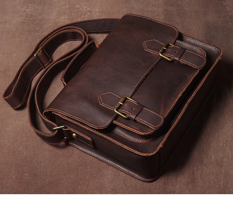 GURO Bolsos de mensajero de cuero auténtico Retro, bolso de hombro para hombres y mujeres, bolso cruzado Piel de vaca natural, bolso informal, bolsos de lujo Cambridge