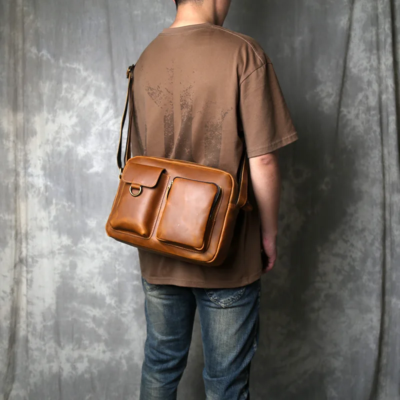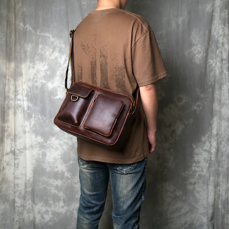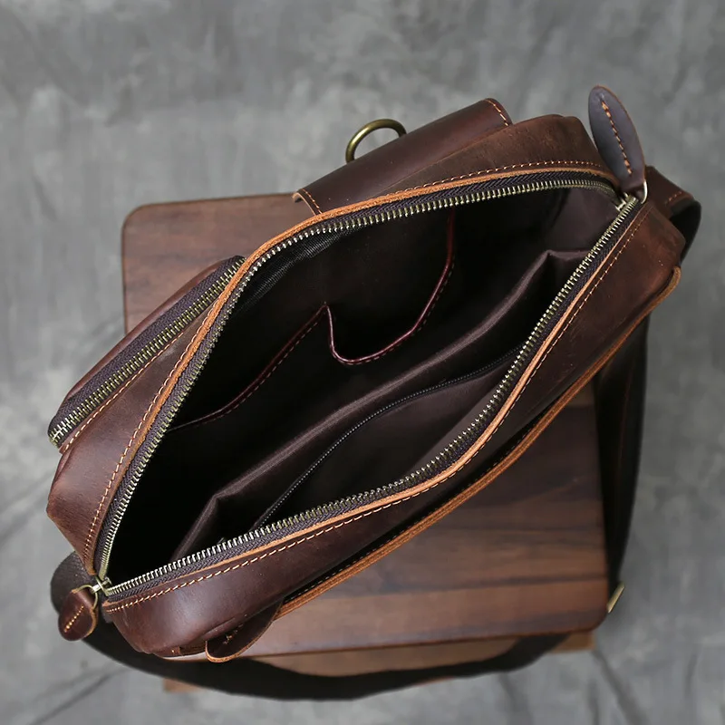 빈티지 미친 말 가죽 메신저 백 레트로 탑 곡물 소 가죽 크로스 바디 사 첼, 대용량 진짜 가죽 안티 도난
