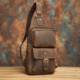 NASVA 정품 가죽 남성용 가죽 가슴 가방 남성용 빈티지 슬링 백, 크로스 바디 숄더 백 캐주얼 소형 배낭